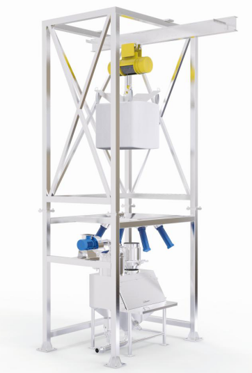 噸包拆包機(jī)采用設(shè)備自帶的電動葫蘆、叉車、行車進(jìn)行物料提升,有效降低了人工勞動強(qiáng)度,拆包處理量大,400KG~3T均可。